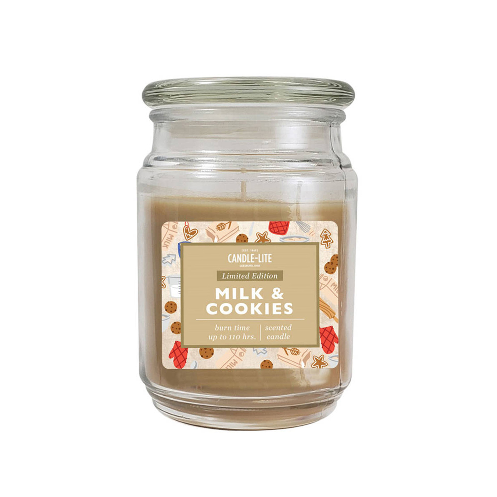 Vonná sviečka od Candle Lite vo veľkej dóze zo silného skla so skleneným viečkom má 100% bavlnený knôt a najkvalitnejšie vonné kompozície. Sviečka Milk & Cookies v sebe ukrýva vonné tóny sušienok, cukrovej trstiny, kešu, medu, kokosu a marshmallow.