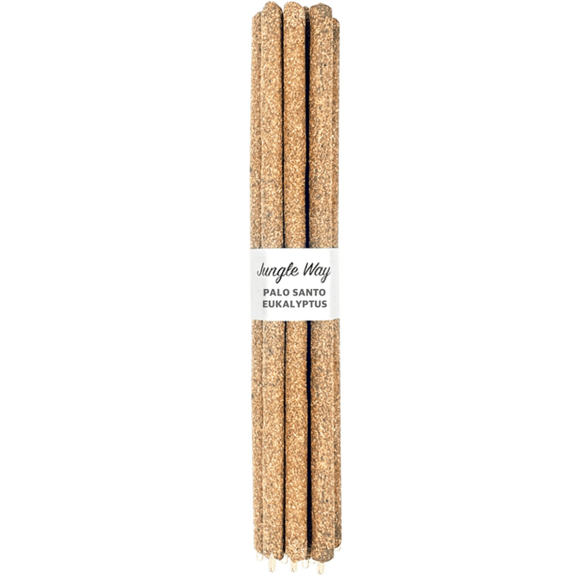 Prémiové vonné tyčinky Jungle Way sú ručne mleté aj zvíjané peruánskymi domorodými kmeňmi zo 100% prírodných ingrediencií, bez pridaných aditív. Základnou zložkou tyčiniek je posvätné drevo Palo Santo , ktoré je kolektivizované iba zo spadnutých vetiev. Jeho použitím teda nie je podporované drancovanie a výrub tohto ohrozeného skvostu. Druhou surovinou je peruánsky Eukalyptus – aroma rastlina využívaná na inhaláciu pri problémoch s dýchacími cestami. Kombinácia Palo Santa a Eukalyptu má silne očistné účinky ako na priestor, tak aj na bytosti v ňom. Harmonizuje, vyrovnáva energiu, posilňuje intuíciu, chráni proti negatívnym vnemom, čistí dýchacie cesty, reguluje stres a podráždenosť. Zapáľte si tyčinku a nechajte sa unášať jemne drevitou, balzamickou, mysterióznou a zemitou vôňou amazonského pralesa po celých 90 minút. Vyrobené v Peru.