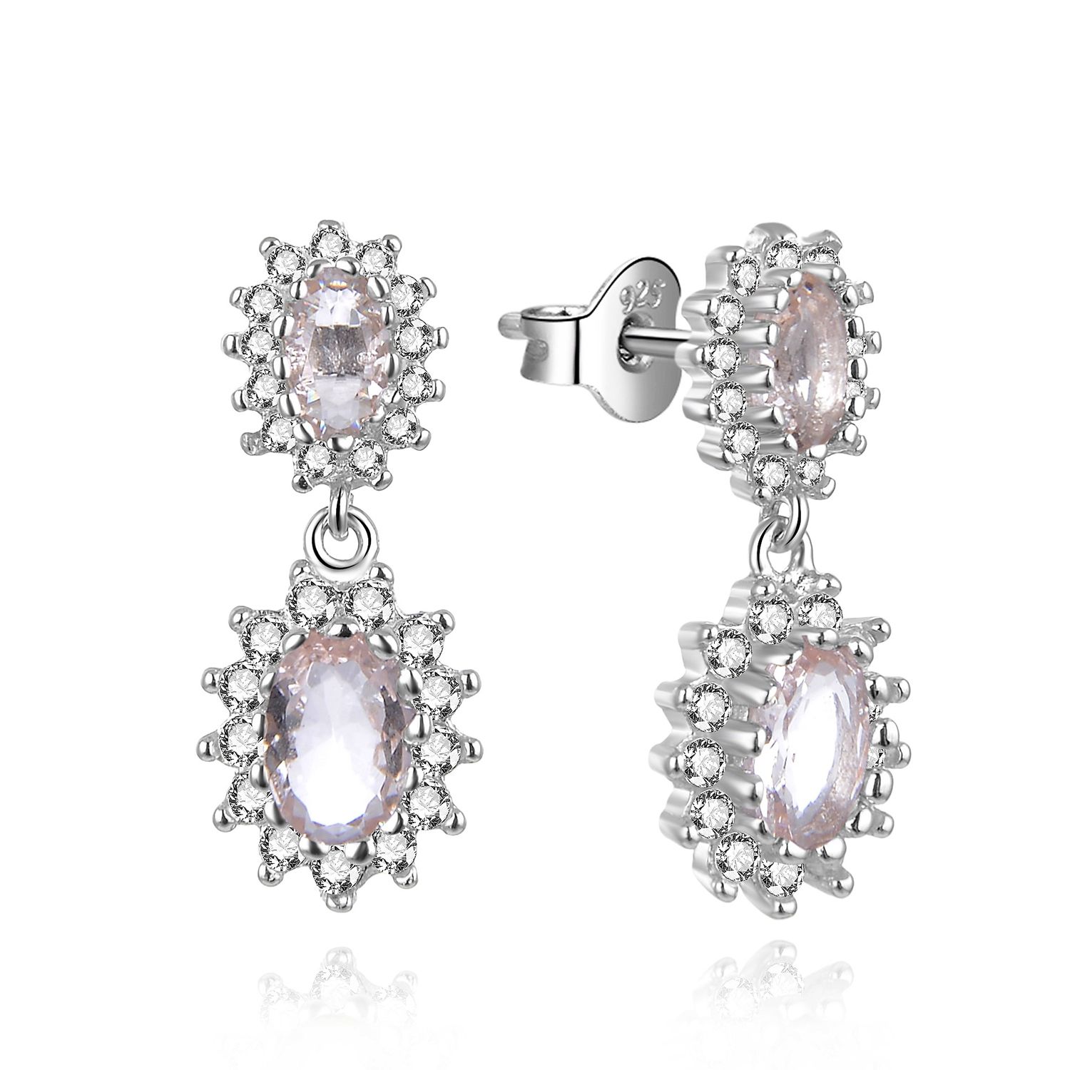 MOISS Pôvabné strieborné náušnice s púdrovo ružovými kubickými zirkónmi E0003114