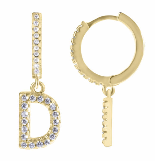 Troli Kruhová pozlátená single náušnica „D“ so zirkónmi