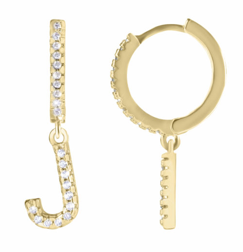 Troli Kruhová pozlátená single náušnica „J“ sa zirkónmi