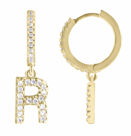 Troli Kruhová pozlátená single náušnica „R“ so zirkónmi