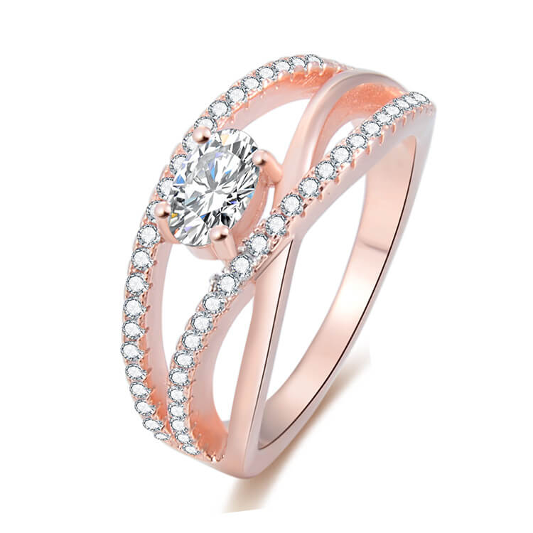 Beneto Ružovo pozlátený strieborný prsteň so zirkónmi AGG331 50 mm