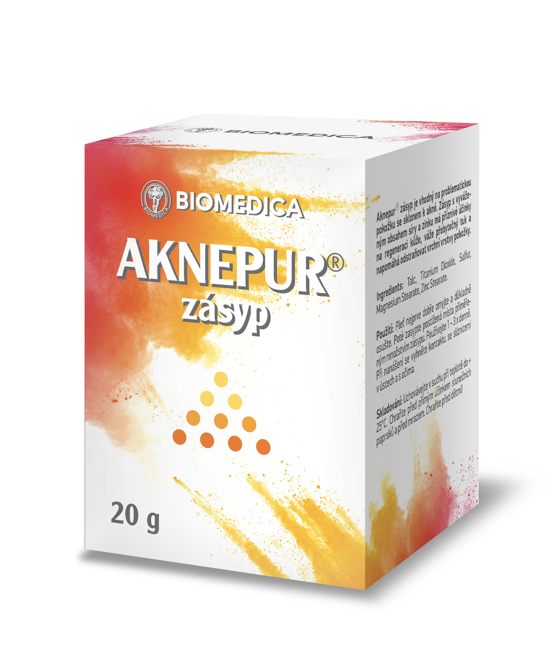 Aknepur zásyp je tradičný zásyp s obsahom síry a zinku vhodný na starostlivosť o problematickú pleť s akné. Prípravok napomáha vysušiť problematické miesta a urýchľuje regeneráciu pokožky.