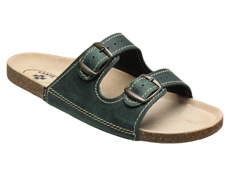 Zdravo tná obuv pánska D/22/91/BP zelená sú pánske domáce šľapky. Pánsky korkový pantofel. Nastaviteľné pásky z usňového materiálu. Kožená stielka. Farba – zelená.