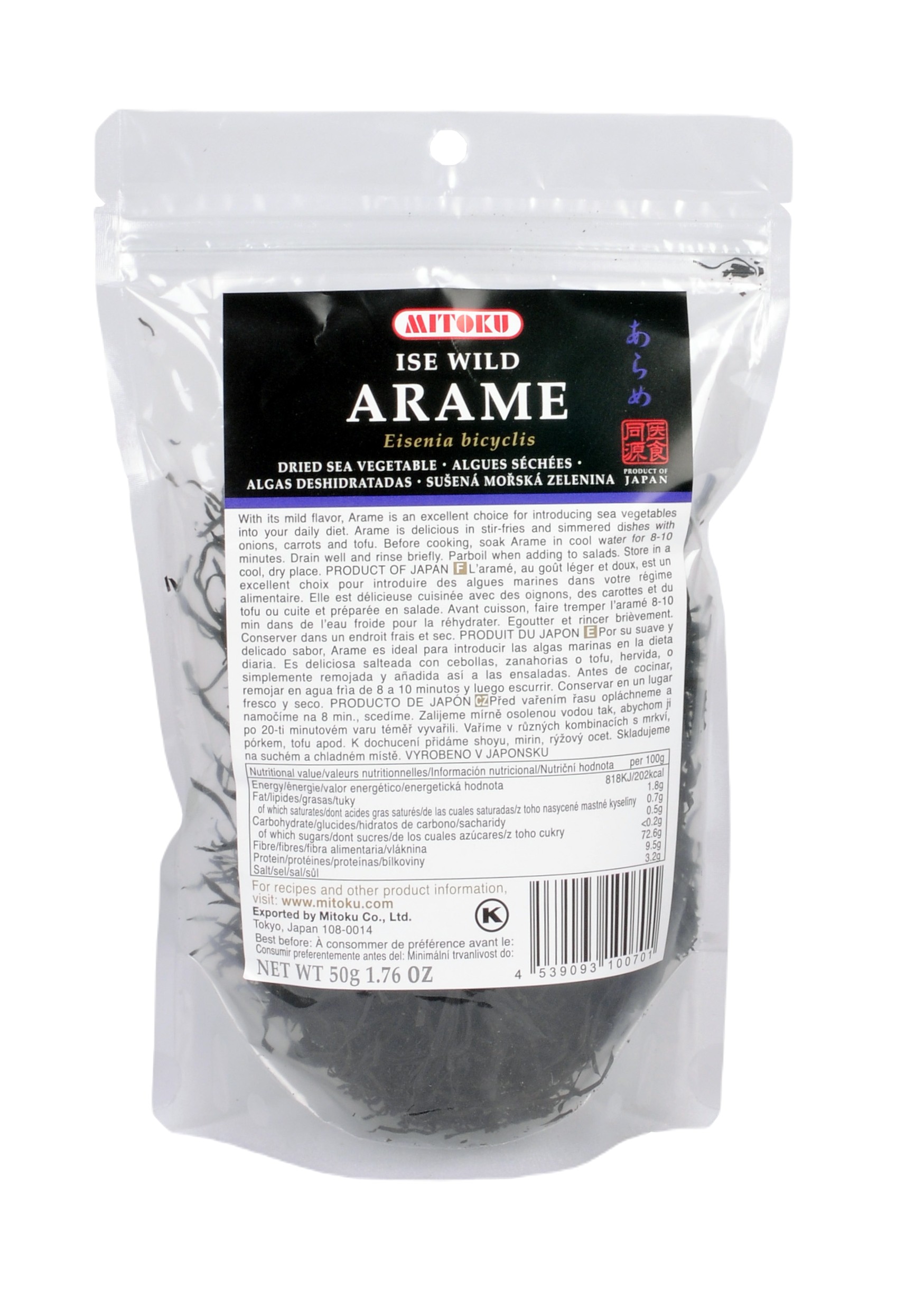 Arame patrí medzi hnedé riasy, ktoré sú obzvlášť bohaté na jód a vápnik. Arame má zo všetkých morských rias najjemnejšiu chuť a aroma . Preto sa najčastejšie spolu s riasou Wakame odporúča začiatočníkom. Obsah: 50g Krajina pôvodu: Japonsko
