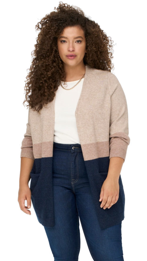 ONLY CARMAKOMA Dámsky kardigan CARSTONE 15247297 Mocha Meringue W. MELANGE/BROWNIE MELANGE/MARITIME BLUE MELANGE 3XL/4XL